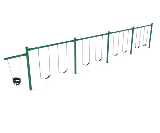 4-Bay Elite Single Post Swing - Frame with Hangers and 4 Bay Belt Seat Package