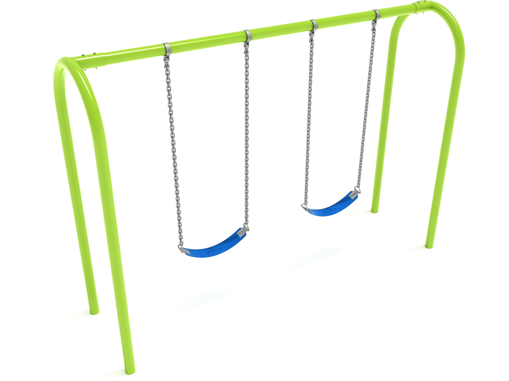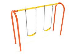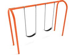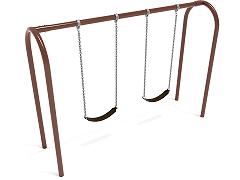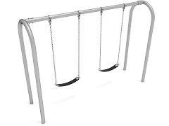Swing into action with the modern, streamlined design of the 8-foot-high Elite Arch Post Swing. A classic that's popular on playgrounds big and small, this single-bay swing set can accommodate two belt seats, along with chains and durable hardware that go the distance. This swing set can be used with belt or bucket seats, to meet your specific needs and age range. The arch style adds a contemporary twist to your traditional A-frame swing set while coordinating with your existing playground equipment. This set is available in beautiful gem tones—Cobalt Blue and Rainforest Green—for quick shipping. Or, choose a custom color to match your outdoor equipment. Ask our sales representatives for a full-color list and shipping lead time information. Your playground, park, or care center will feel like a brand new space, with happy kids to boot!